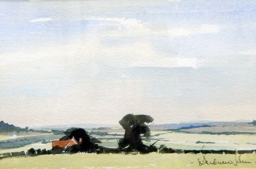 Andrew John (20th century) Watercolour"Across the Sussex Weald", signed lower right and titled verso, 15cm x 23cm
