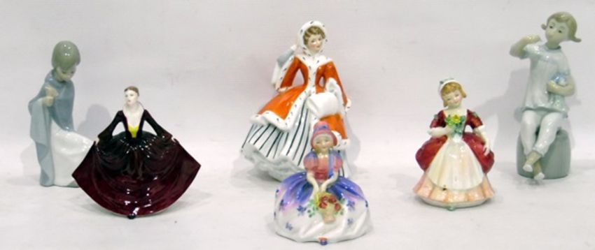 Royal Doulton figure 'Monica' HN1467 (multiple cracks), another 'Valerie' HN2107, another 'Noelle', a Coalport figure of a lady and two Lladro figures of children (6)