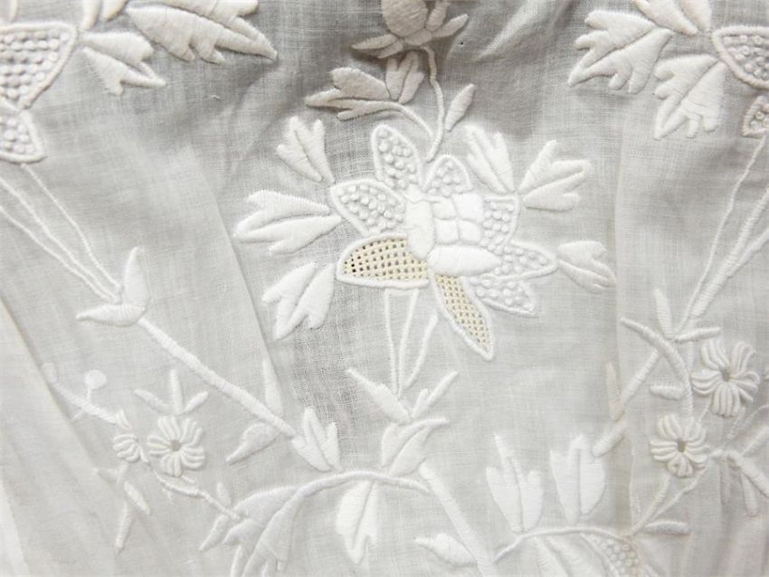LOT WITHDRAWN - Early 20th century christening gown heavily embroidered to the front with flowers, lace panels and another full-length baby gown with lace panel to the bodice and sleeves (2)