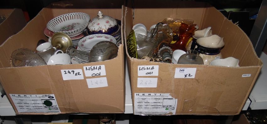Assorted ceramics, glassware, jugs and two moulded glass table lamps (without shades) (2 boxes)