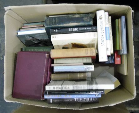 The Book of Nature Study and various books on military history including Churchill, Kennedy, etc (1 box)
