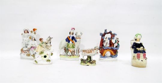 Quantity of 19th century Staffordshire pottery flatback models, tallest 19cm high (6)