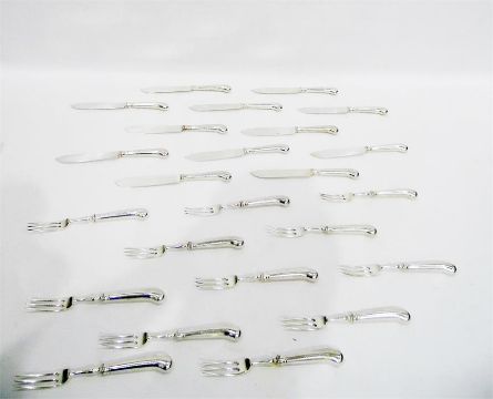 Set of Britannia silver pistol-handled fish knives and forks, 12 pairs