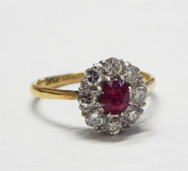 18ct gold, platinum, ruby and diamond cluster ring, 2.6g in total