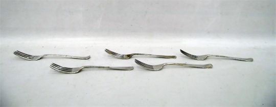 Five Georgian silver dinner forks, varying dates and makers, 9.4oz approx