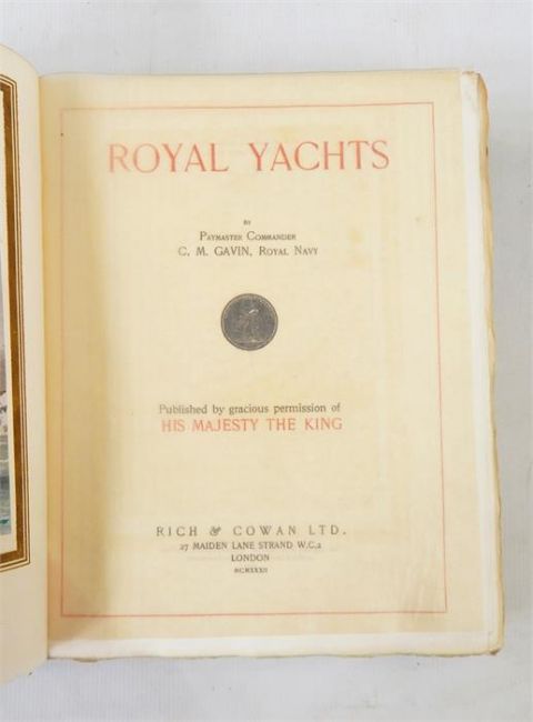 Gavin, C M  "Royal Yachts", Rich & Cowan 1932, colour plates tipped in, tissue guards, black and white plates, no.77/1000 limited edition, blue cloth, gilt titles, front hinge cracked and some rubbing to backstrip
