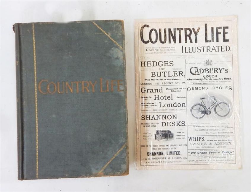 Volume 1, No.1 of Country Life Illustrated with which is incorporated Racing Illustrated and one bound volume of Country Life Magazine 1933, July to December, numerous black and white photographs, articles, etc, green cloth with gilt titles, rather rubbed and worn (2)