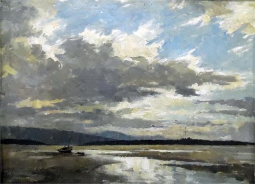 M E A Ayatten(?) (20th century school)  Oil on board  Coastal scene, signed indistinctly lower left, 43cm x 59.5cm