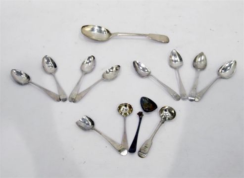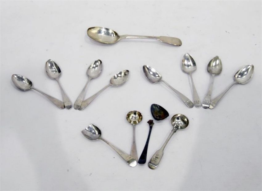 Two silver salt spoons, sundry silver flatware and eight Georgian teaspoons