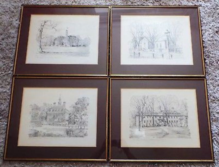 Collection of approx 25 framed prints, etchings etc including signed limited edition prints by Frank Wootton and Ann Blockley, two 19th c etchings, 4 signed pencil drawings by Charles.H Overly, collection of vintage (mounted) advertisements and a trio of Cotswold interest prints. (1 box)