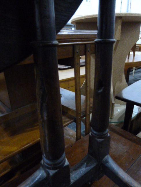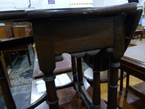 Late 18th century oak oval fall-flap gateleg table having Spanish style feet, 68cm wide