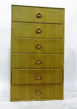 20th century pedestal chest of six drawers, with turned knob handles, 61cm wide