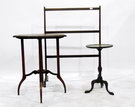 Rosewood rectangular-top occasional table, width 53cm, a small mahogany wine table on tripod legs and a mahogany towel rail (3)