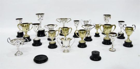 Quantity of predominantly silver plate trophies presented to Peter M Heaton (Lucy Morton's son), school and RAF associated trophies for swimming