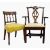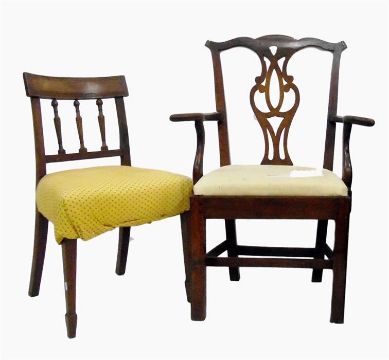 Early 19th century oak open arm elbow chair with shaped crest rail and pierced vase-shaped splat and two other 19th century chairs (3)