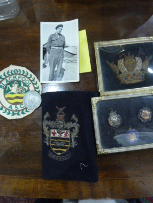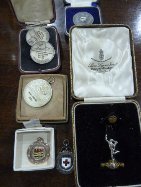 Mixed lot of collectables to include a caligraphy pen with label 'HRH Prince of Wales, Blackpool, 8th July 1921, signed visitor's book with this pen', a gold shield winners 1922-23 medal, other medals, etc