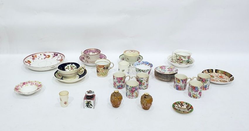 Quantity 19th century English china cups and saucers, porcelain tea bowl, Chintz cups and saucers and other small decorative ceramics