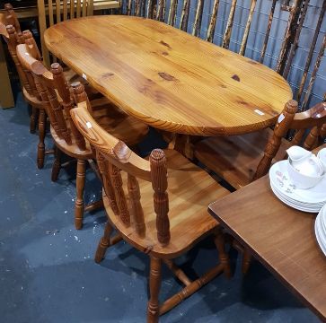 Pine kitchen table and a set of four pine kitchen chairs (5)