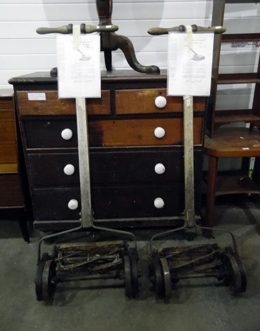 Two vintage Pennsylvania lawn mowers with original instruction leaflets (2)