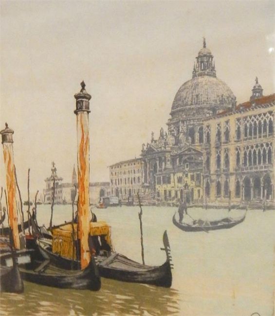 UnattributedAquatintVenetian canal scene, signedUnattributedWatercolour drawingScene of Venice (2)