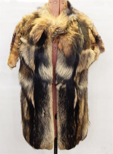 Raccoon gilet coat with cap sleeves and a fox fur and leather hat (2)