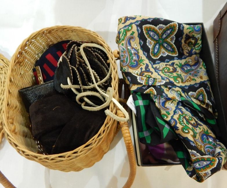 Quantity of 1960's belts, scarves, early 20th century tortoiseshell-style hair combs, etc