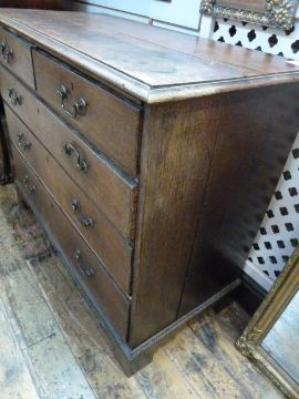 Oak chest of two short and three long drawers with brass swing handles, on bracket feet, 109cm wide x 89cm high Re: Enquiry - Toys, Dolls, Models, Antiques & Interiors (4th and 5th December)The depth measure 52 cmsImages attached . The top is stained and needs attention.