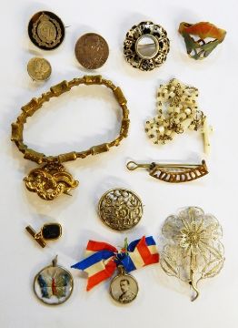 Victorian gold plated brooch, silver and enamel memorial brooch, glass enamel butterfly pendant silver inlaid tortoiseshell Royal Engineers brooch   and other jewellery