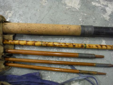 Assorted angling kit including rods, reel, flies, landing net, folding seat, fisherman's bag