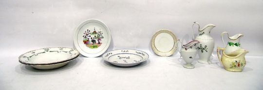 Late Georgian style porcelain footed cream jug, 3 other jugs and a small quantity 19th century and later plates and dishes