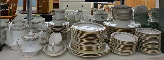 Large quantity of Paragon 'Belinda' dinner, tea and coffee ware to include four tureens, 12 dinner plates, teapot, coffee pot, soup bowls, etc