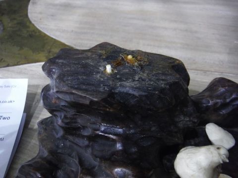 Japanese ivory and treen ornament as birds with two chicks in nest