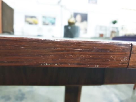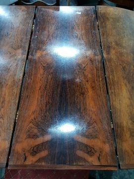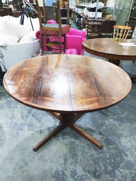 1960's/70's rosewood extending dining table on circular cruciform base, with cross-banded border and two loose leaves, extended 218cm (probably Danish by Niels Moller Gudme Mobler or Bernhard Pedersen and Son) (License number 577149/01)