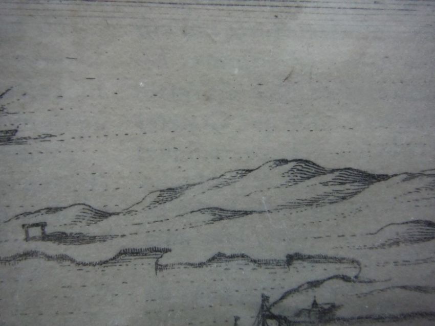 Black and white engravingView of Malta, harbour scene with vessels, 19cm x 26cm