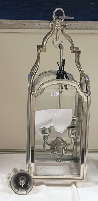 Four-branch hanging lantern within a glazed steel frame, height 85cm (VAT payable on hammer)