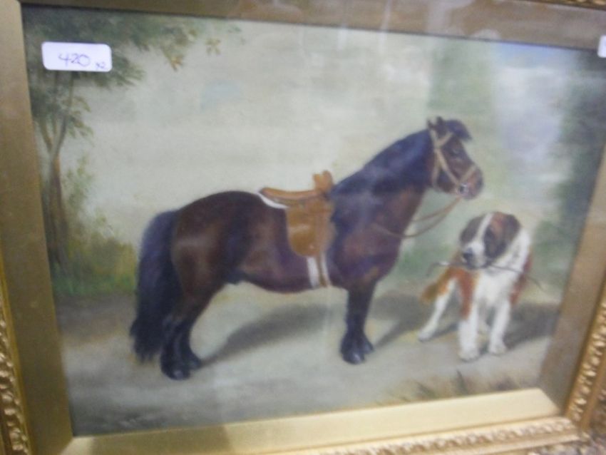 Frederick French (1896-1914)Oil St Bernard by kennels, signed lower right, 20.5cm x 28.5cmOilSt Bernard by pony, initialled lower left, 20.5cm x 28.5cm (2)