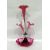 Pink glass epergne with three bowls as flowerheads, 55cm high