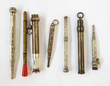 Seven silver and white metal propelling pencils and one further pencil (8)