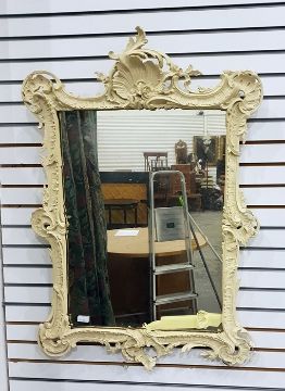 Cream painted acanthus moulded framed wall mirror and a mirrored door (2)the size is 97 cms x 69 cms There is damage to the acanthus at the bottom of the frame and the top.