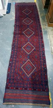 Meshwani runner decorated in blue, red, cream and orange