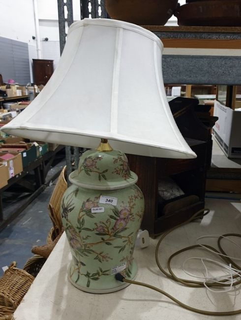 Chinese style ceramic table lamp together with a wooden shoe shine box (2)