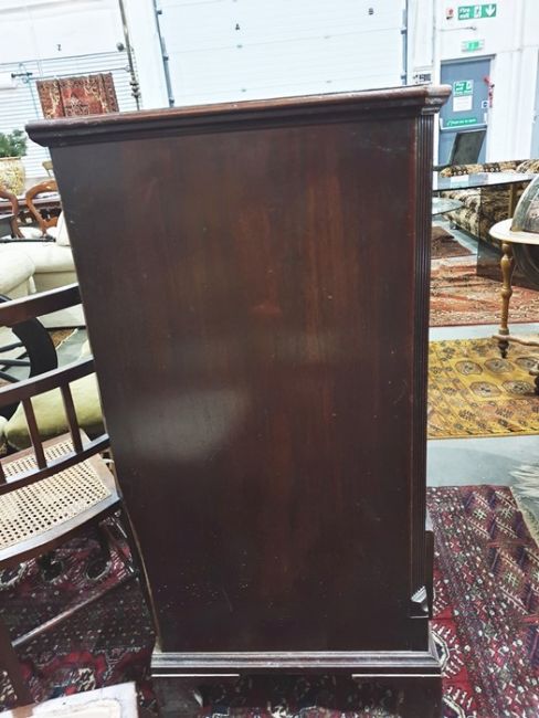 19th century mahogany chest of two short over four long graduated drawers, fluted pilasters, the whole raised upon bracket feet, 111cm The dimensions of the piece are: Width 110 cm     Depth 56 cm     Height 113 cmThere is a piece of wood missing from the top, there are also scratches to top. There is a handle missing on one of the small draws. There is also a lock missing from the bottom draw. There are pieces of wood missing from one of the draws as well as bits out of the side. Two of the back panels are lose. Attached are some further images.