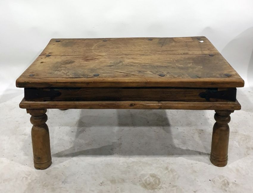 Two rectangular Eastern hardwood coffee tables on turned supports (2)The small one Height 42 cm, width 62cm, length 92cmthe larger one Height 40 cm, width 60cm, depth 110cm