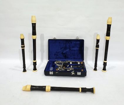 Buffet clarinet in case and a collection of Aulos recorders the model number is 293881