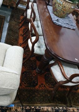 Burnt orange ground Eastern style floor rug, the central field decorated with elephant foot guls, 327cm x 210cm and another similar smaller, 211cm x 148cm (2)