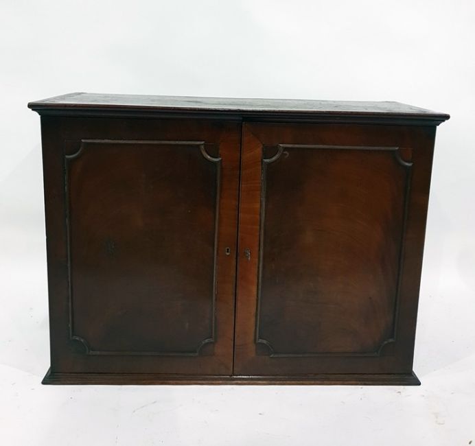 Mahogany cupboard with shelves enclosed by pair frame panelled doors
