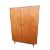 Bedroom suite designed for G-Plan by Kofod Larsen to include teak double wardrobe (122cm x 176cm), single wardrobe (99cm x 176cm), long mirror-back dressing table (157cm long), all with square handles, headboard with padded leatherette centrepiece flanked two drawers and on tapering supports (242cm long), clip on lamps and a black leatherette stool