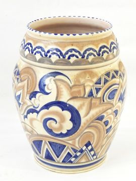 Poole pottery vase, shape no.429, design AX by Ruth Paveley, in shades of beige, cream and blue, 26cm (with hairline crack from rim approximately 9cm)