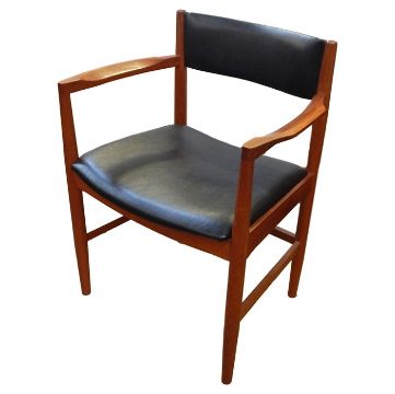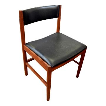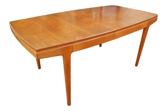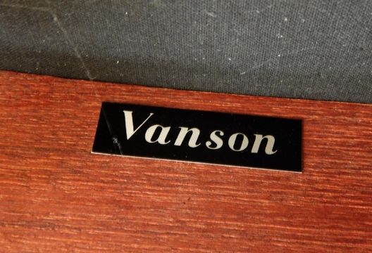 Mid 20th century Vanson teak extending dining table and six Vanson chairs (2+4) with black leatherette seats and backs, with Vanson labels (7)