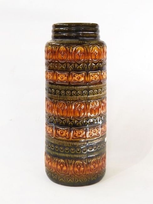 Studio pottery vase, brown incised detail on green ground, marked W. Germany 289-41, 42 cms high